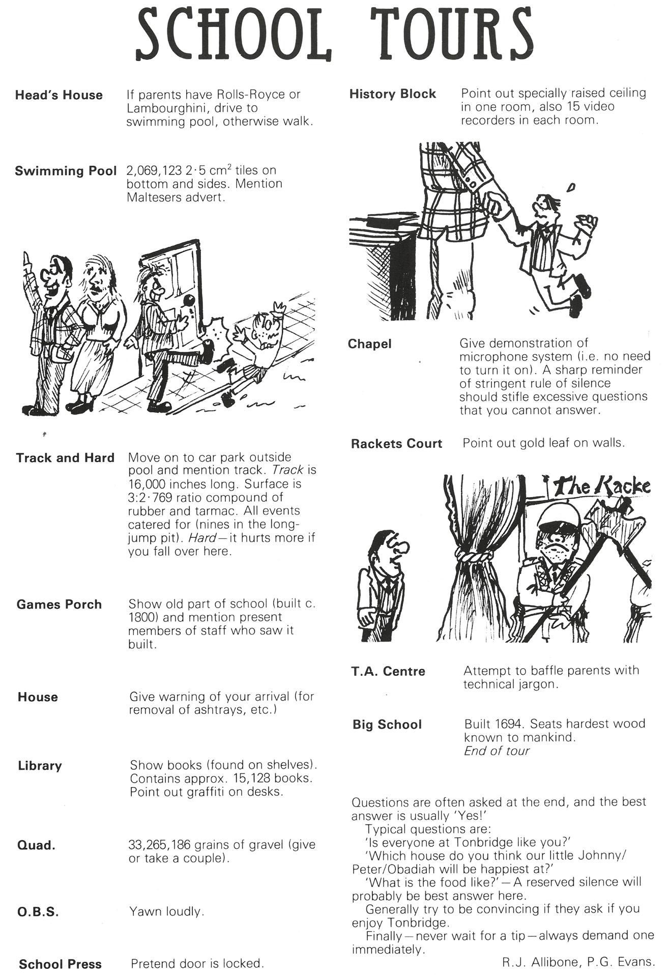 Planning the new house was an interesting experience and prospective housemasters might like to know how the system works. You walk round with Mr Shellard and Mr Werren, and they agree to all your demands and take them down in notebooks. You of course do not take notes. As soon as they are outside the gate, they throw away their notes and draw up their own plans. A few weeks later, a document arrives in your pigeonhole marked “Approved by the Governors. No further amendments possible.”