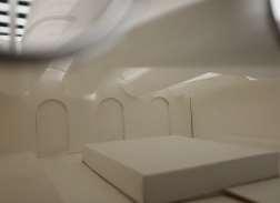 Space Exploration: Steam Bath Model Space Exploration: Swimming Pool Model Model 1@ The layered ceiling panels create skylightopeningsfor natural light. A continuous arched frame on thewall is integrated with the ceiling and set back into the wall to enhance theroom’s spatial quality. Model 1@The swimming pool curved ceiling, inherit from the steam room design, features rhythmic layers for natural sunlight. The orientation changes the swimming direction and offers beach views with a continuous, water-inspired curve. Lower wall openings provide additionalnatural light. Final Model@ The final design of steam room design enhances the ceiling, forming geometric, overlappingpanelsthatcreateasmooth,relaxing transition. The ceiling now pitches for better drainage, with wall grooves channeling water to floor drains. InspiredbySt.Peter’sChurchinKlippan, the sloping roof improves functionality andemphasizes the water theme.