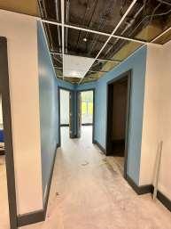 *CAD /Sketch Up/Enscape/ Photoshop Office& HealtcareBuilding Stage 5-7Construction Corridor Corridor Clinical Room Corridor Reception Entrance Group Area New masonry wall added for fire compartmentation in the reception area. Proposed screen along the corridor leading to the group area New roof replacement to entrance canopy and paving to entrance. Wall between two group room open up with folding partition install between room. Proposed new screen. Green corridor wall with dark grey skirting and architrave, ensuring LRV differences between the wall and door for enhanced visibility and accessibility. Different colour of corridor create direction for the building. *Professional @ Part 2 / HamiltonArchitects
