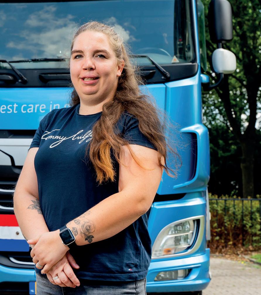 “Ik voel me sterk door deze hobby. Het is een goede uitlaatklep. De mensen op de sportschool zie ik elke zaterdag, het zijn mijn vrienden geworden. Als ik geen chauffeur was, zou ik mee willen doen aan wedstrijden powerliften. Maar die tijd heb ik nu niet. De werkweken van vijftig tot vijfenzestig uur vind ik soms wel pittig. Toch weet ik zeker: ik blijf in het transport. In de toekomst wil ik nog ADR rijden, of misschien mijn bus-rijbewijs halen. Dan heb ik zowat alle rijbewijzen die je kunt halen. Ik vind dat het nooit een excuus hoeft te zijn dat je vrouw bent. Als je iets wilt omdat je het leuk vindt, moet je er gewoon voor gaan. Dat doe ik in mijn werk en in mijn hobby. Vrouwen zien vaak te veel obstakels. Ga er gewoon voor en laat je niet tegenhouden door jezelf!”