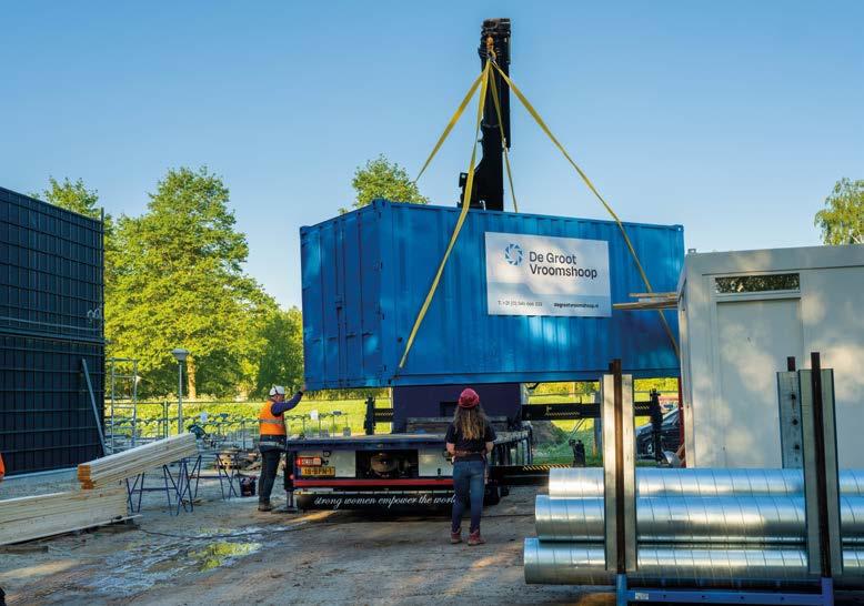 Nathaly komt aanrijden op een klein bouwterrein in Roden. Achterop haar wagen staat een container met materiaal van bouwbedrijf De Groot Vroomshoop. Het bouwbedrijf zet hier een ‘beweegbox’ neer, een nieuwe gymzaal voor de school. Nathaly gaat zo lossen – maar eerst een bakkie.