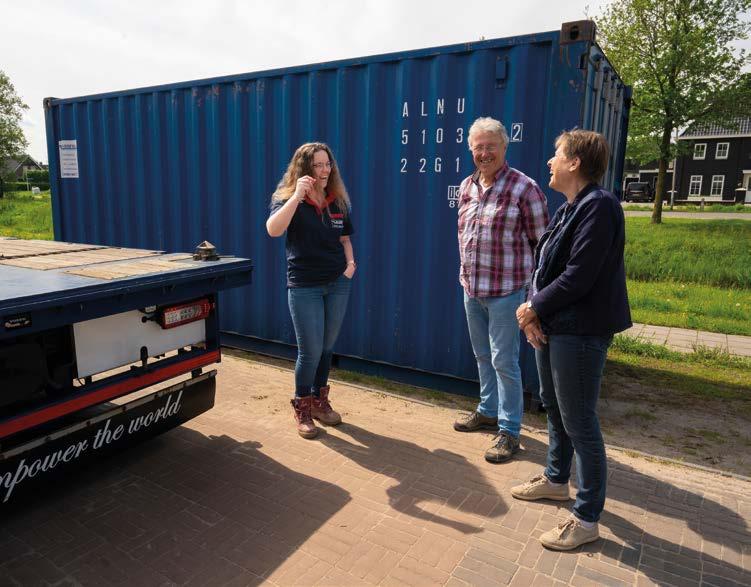 In Vroomshoop koppelt Nathaly de aanhanger af. “Ik ga nu in Almelo een container ophalen in een nieuwbouwwijk. Particulieren hebben bij ons een container gehuurd voor hun verhuizing.”