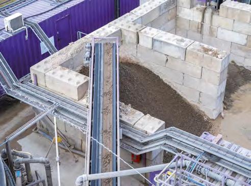 Het proces om van oud beton nieuwe granulaten te maken heeft veel water nodig. Ronald: “Per uur gaat er zo’n 400 kuub water door de installatie. Dat water wordt weer schoongemaakt. En ook voor het slib dat overblijft hebben we een bestemming. Dat wordt vulmiddel voor cement. Zo is de cirkel rond.” Al het gesorteerde materiaal wordt automatisch in de juiste vakken naast de installatie opgeslagen. Op de vakken met betonblokken staat aangeven welke diameter de granulaten hebben.