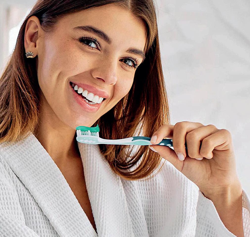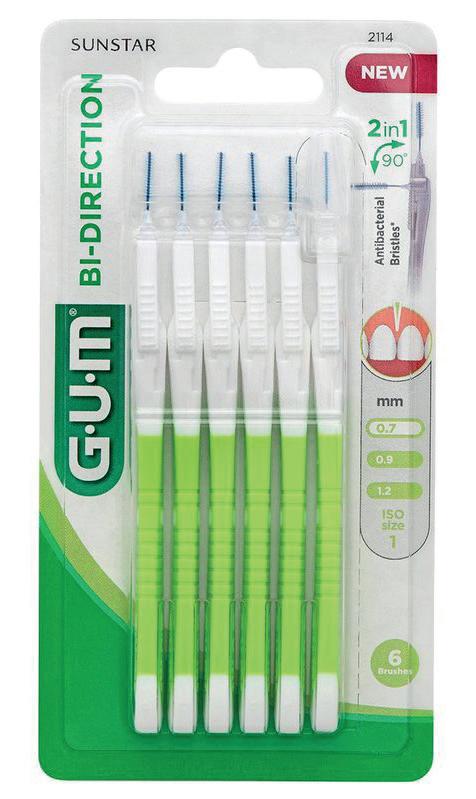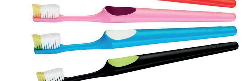 Myk, flat bust med forhøyet tip i front. Denne kommer bedre til mellom tenner og i tannkjøttskanten. Godt grep. Standard størrelse. Assorterte farger. Forpakninger: 1, 80.