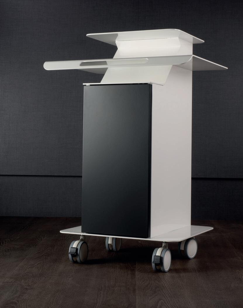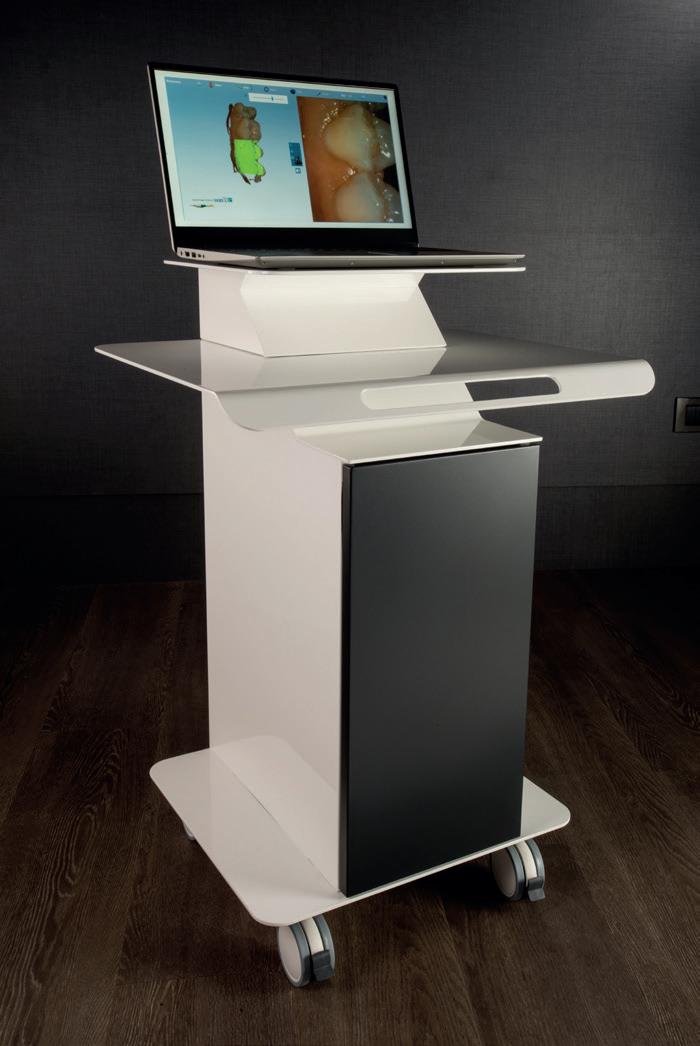 Robost og praktiske løsninger fra italienske Edarredo. Brennlakkert stål, løsninger spesielt utviklet for tannhelsebransjen. Mobilt skap for PC, skanner, scaler, Air-Flow, kirurgimotor osv: