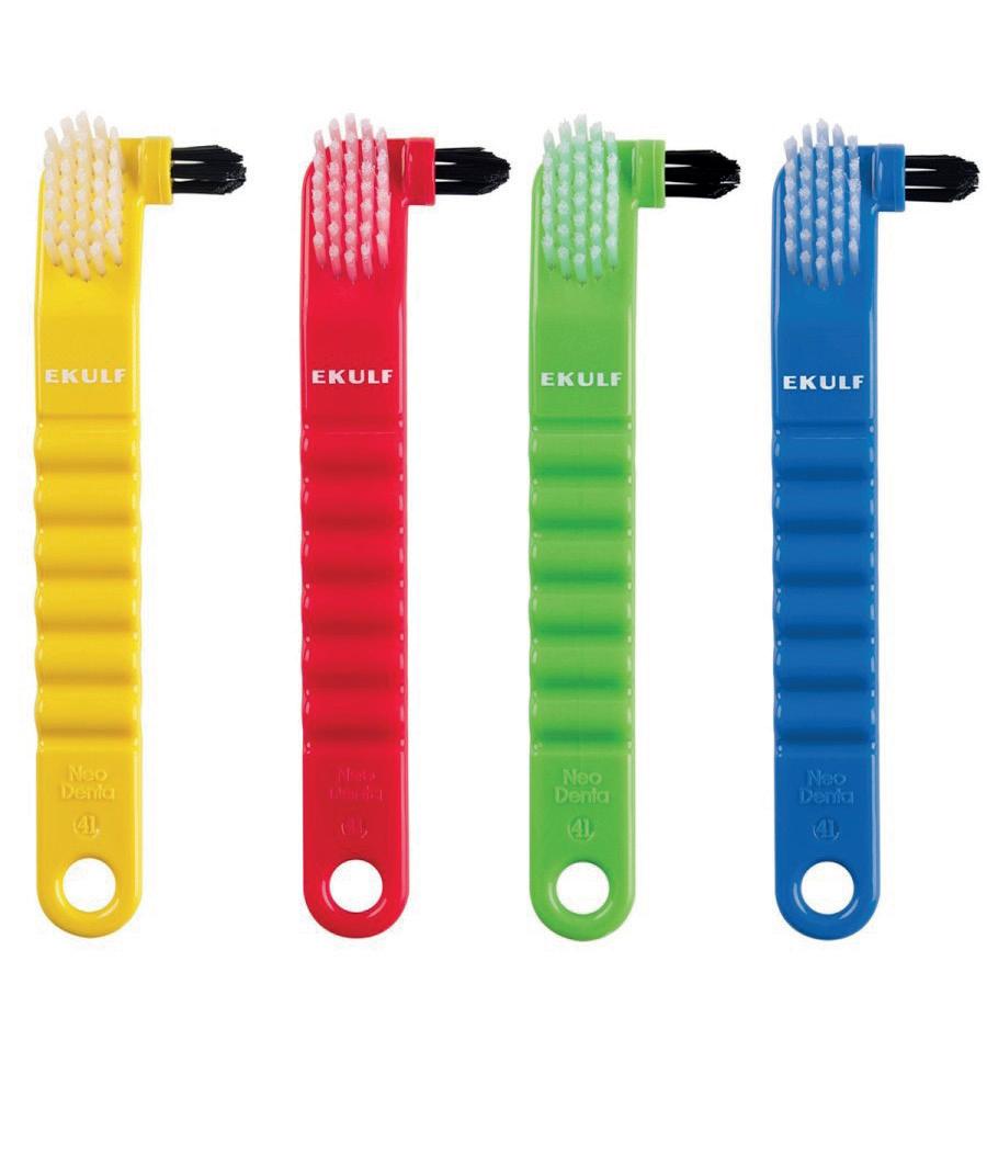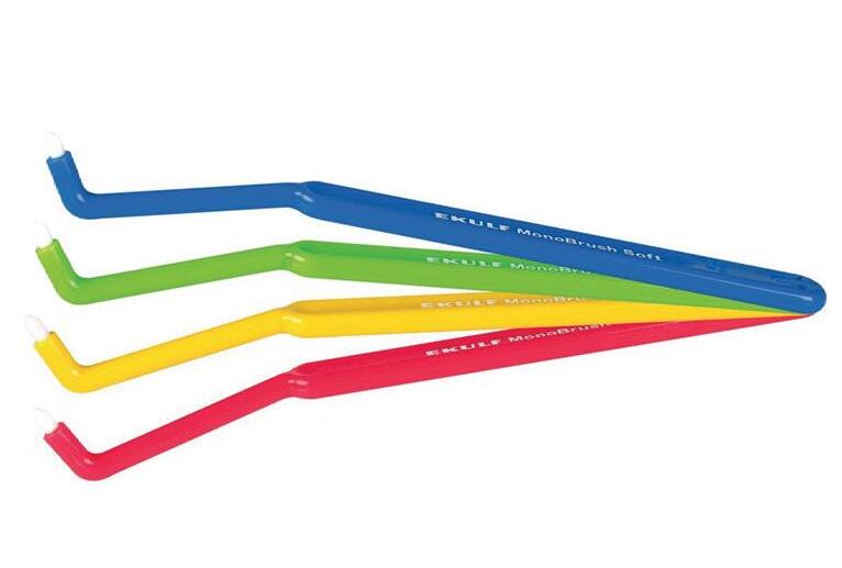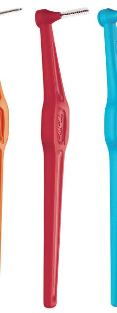Myk bust i to nivåer gir en konisk fasong som gjør at den kommer lenger inn i tannkjøttskanten og mellom tennene. Halsen kan bøyes uten oppvarming for å få optimal vinkel. Godt grep. Assorterte farger. Forpakninger: 1, 80.
