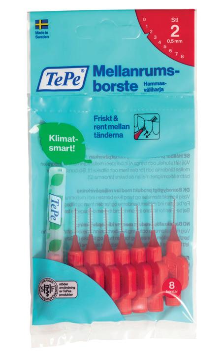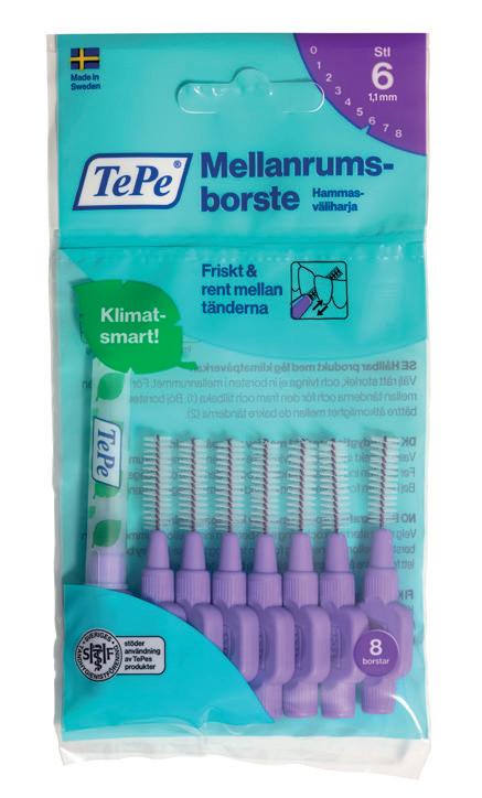 TePe interdental er en effektiv og enkel måte å fjerne plakk mellom tennene. Størrelsene 0,
