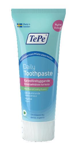 Finnes i TePe Daily™ (voksne, barn og baby), og TePe Pure™ for pasienter med munntørrhet og tannkjøttsproblemer.