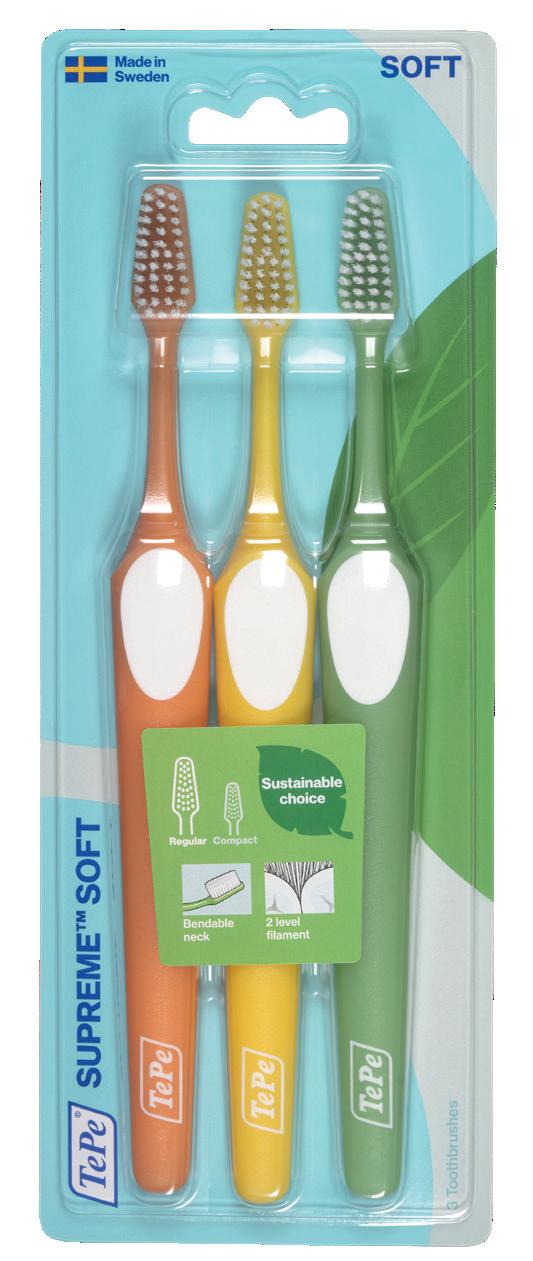 - TePe Supreme kompakt tannbørste, ypperlig ved ortodonti