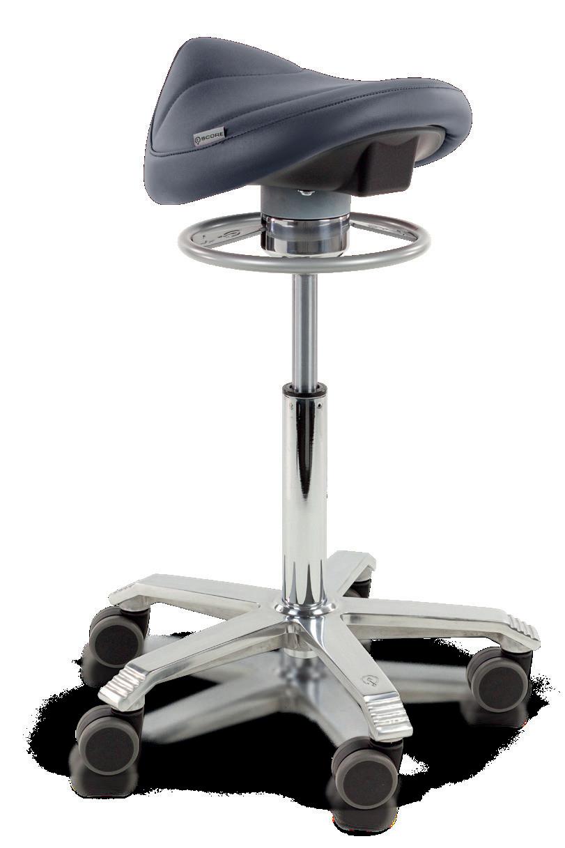 30% av tannhelsepersonell går av tidlig på grunn av rygg- og nakkeskader. Med sadel stol fra Score som har Balance 360° aktiviseres du til å sitte korrekt, med en naturlig oppreist ryggstilling og minimal trykkbelastning. Balance 360°-konseptet gjør at stolsetet beveger seg behagelig med deg, slik at du får en dynamisk sittestilling, uten at muskelgrupper og ryggrad er under langvarig og ensidig belastning.