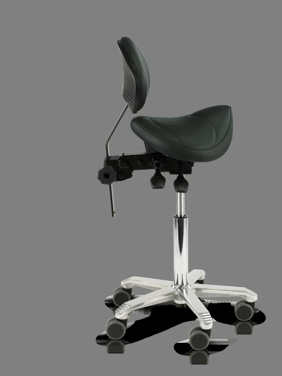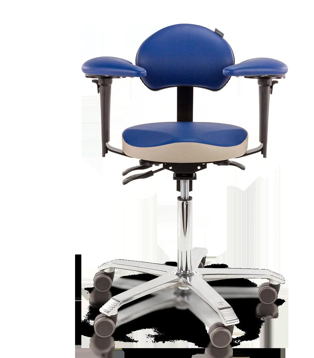 Ergonomisk sete, ryggstøtte og unike armlener som gir optimal støtte, men lar deg utføre oppgaver med mikroskopet i en avslappet stilling. Armstøttene kan enkelt flyttes nærmere kroppen og gir deg god bevegelighet rundt pasienten.