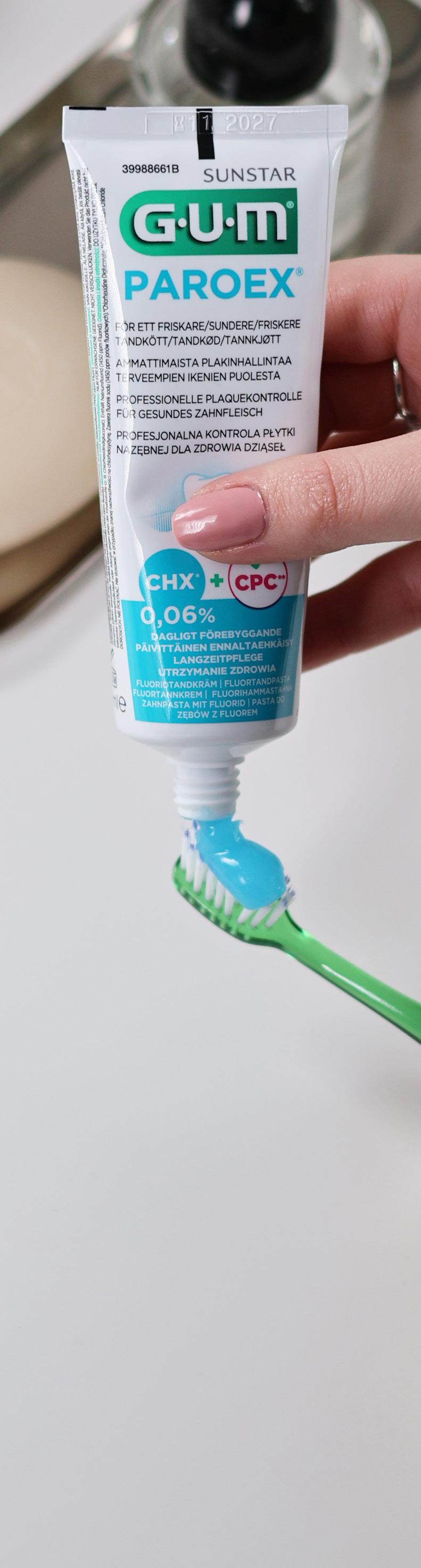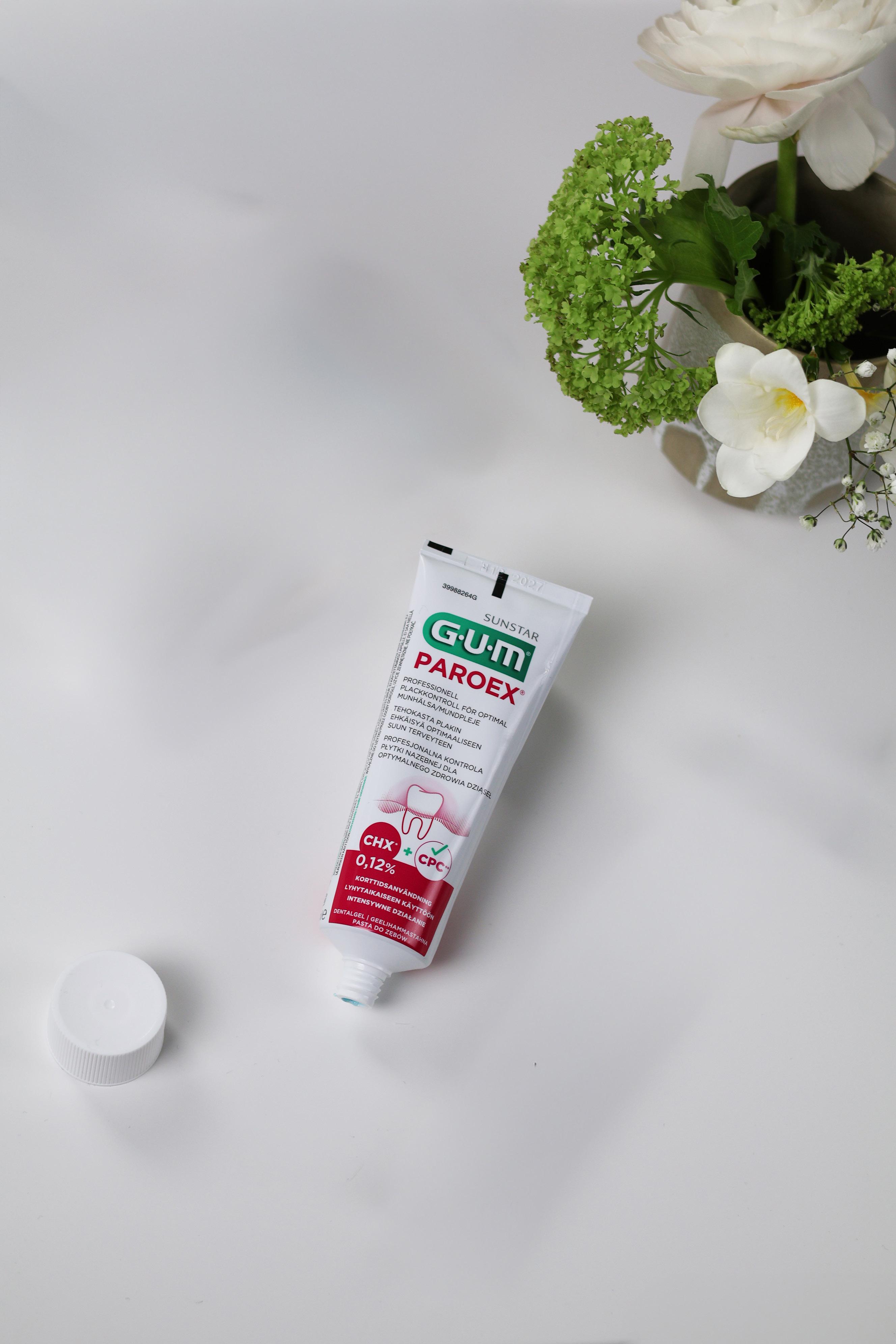 1490 ppm fluor, isomalt og 0,05% CPC (cetylpyridinklorid). Antibakteriell. Anti inflammatoriske ingredienser (ingefær, aloe vera og bisabolol) og antioksidanter (vitamin E).