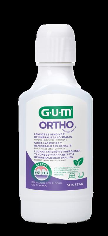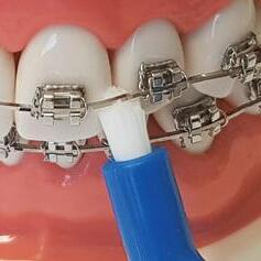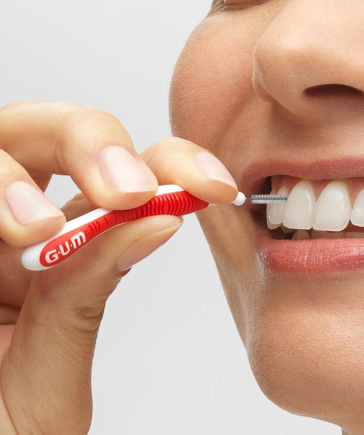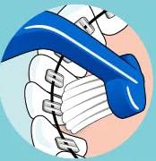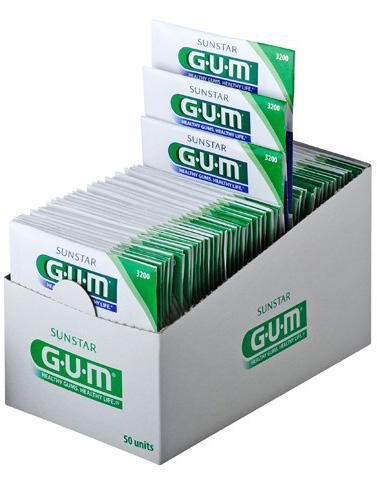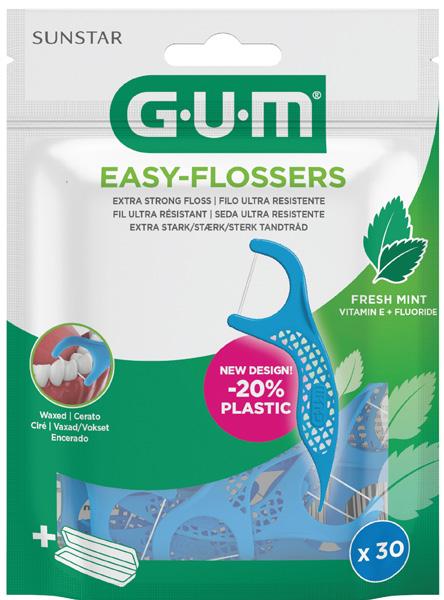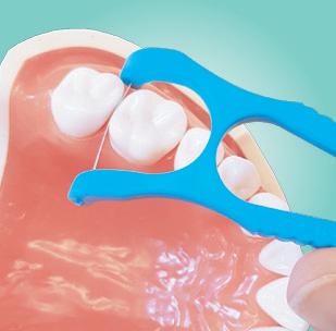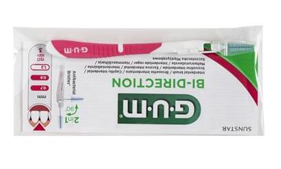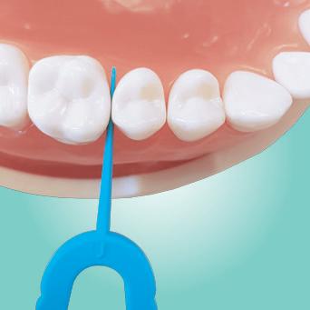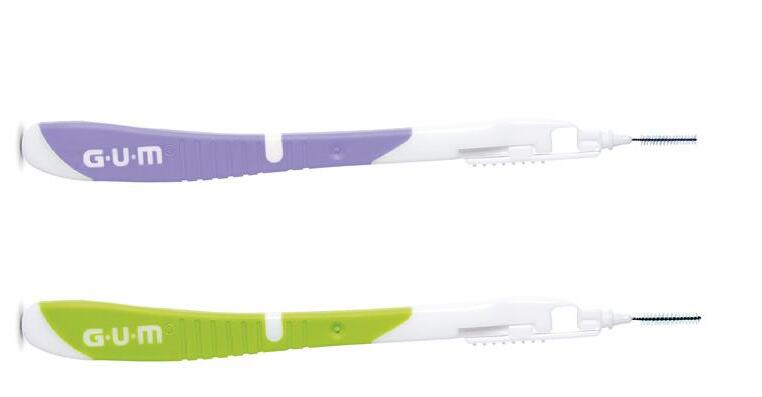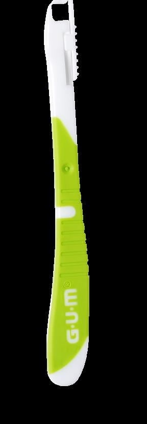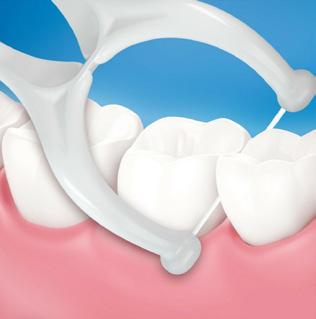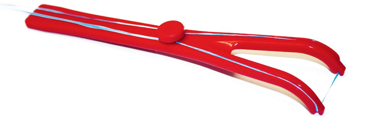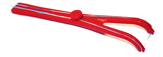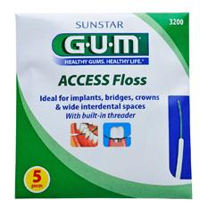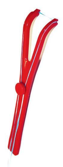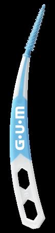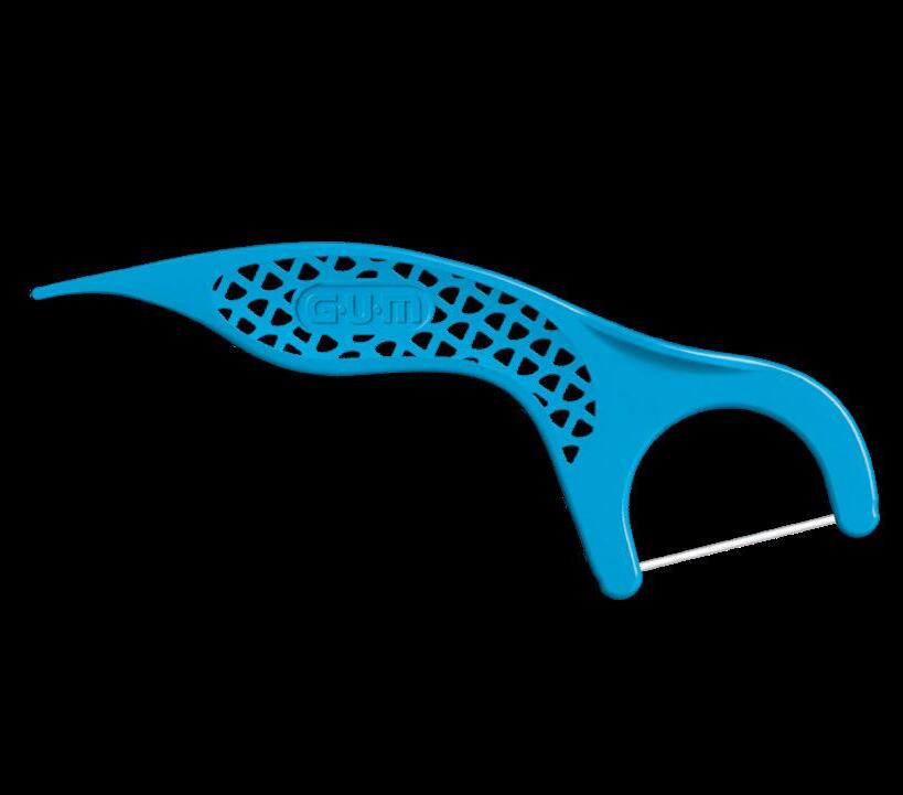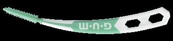 GUM Ortho Floss er en super tanntråd med skumplastdel og spiss ende som brukes for å føre tråden igjennom.