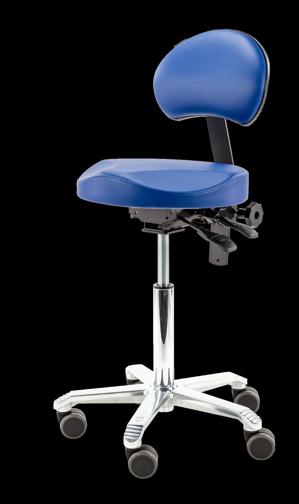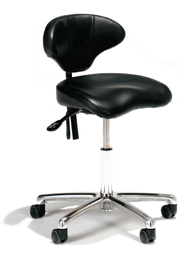 Klassisk, medisinsk stol med ergonomisk sete for bedre blodsirkulasjon. Vinkel på setet kan justeres og låses. Ryggstøtte som kan justeres i ønsket høyde og vinkel.