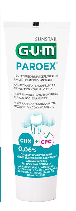 400 ppm fluor, isomalt og 0,05% CPC (cetylpyridinklorid). Alkoholfri. Antiinflammatoriske ingredienser (ingefær, aloe vera og bisabolol) og antioksidanter (vitamin E).