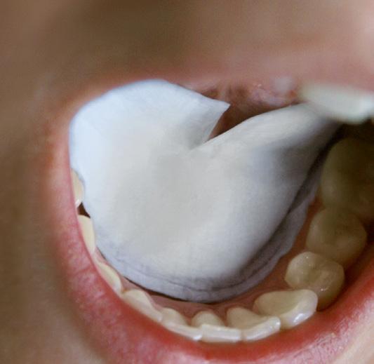 Klebefri med mint. Transparent. Eske med 5 rader. Beskytter mot irritasjon og sår.