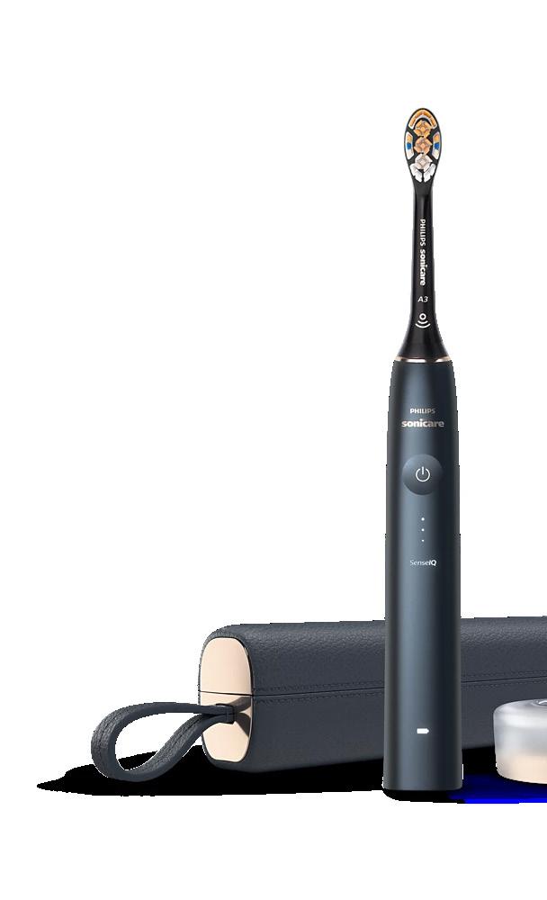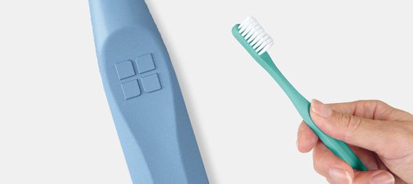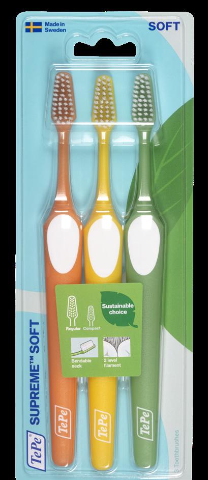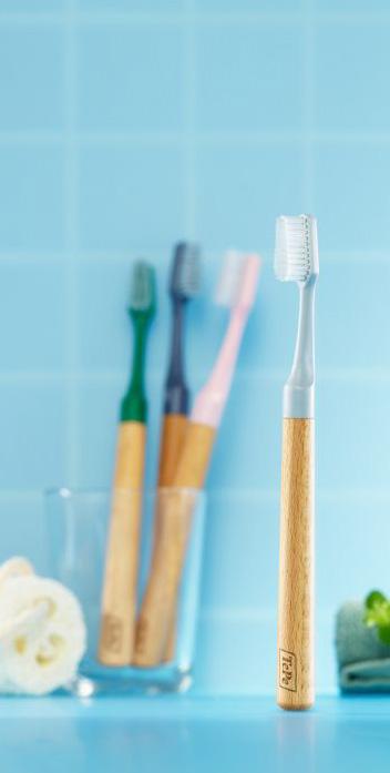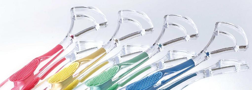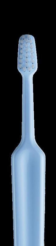 Elegant tannbørste med myk bust og koniske børstestrå som lett og effektivt kommer til også mellom tennene og i tannkjøttskanten.
