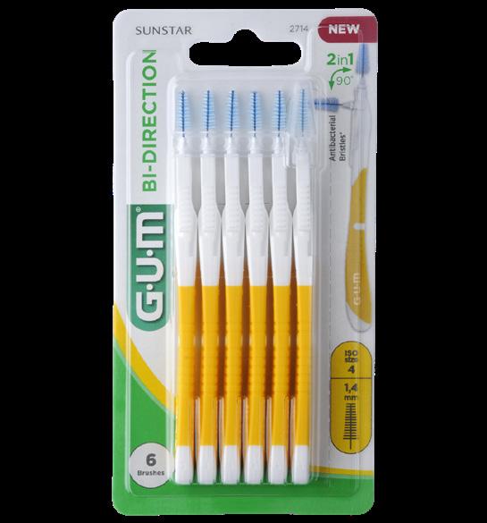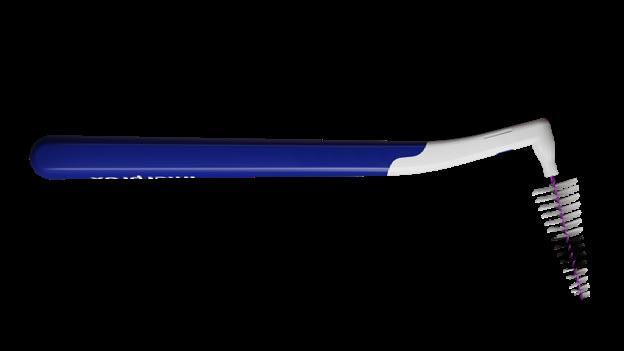 For rengjøring i mellomrom under f.eks. broer og rundt implantat. Stiv ende for lettere innføring, så en oppflosset børstedel på midten. Tannkrem e.l. kan gjerne brukes.