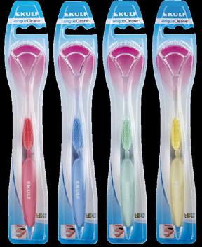 Ergonomisk grep og unikt design gjør det enkelt å rengjøre tungen. Litt mindre design for å komme til lengst bak på tungen, som gjør at brekningsrefleksen ikke stimuleres på samme måte som ved større tungeskrape. Gummihåndtak gir fastere grep for sikrere og mer behagelig rengjøring av tungen.