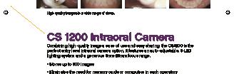 Med Carestream intraoralt kamera er det superenkelt å ta krystallklare bilder i munnen, både for dokumentasjon og bedre pasientkommunikasjon. Bildene lagres enkelt sammen med røntgenbildene. Superlette kameraer med USB-tilkobling gjør det enkelt å flytte mellom flere behandlingsrom.