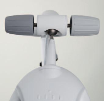 2. Use both hands to finalize positioning of Accelerator Head so that Light Guide and IsoPrep Retractor slots are aligned. Tighten Accelerator Head and Accelerator Boom knobs (4). Lock casters in position. While engaged, the Light Guide and IsoPrep Retractor will allow the Accelerator Head to follow minor movements of the patient’s head to ensure proper alignment.