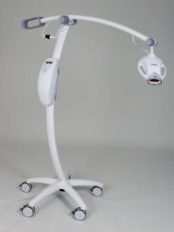 Once whitening gel application is complete (see Kit manual for instuctions), raise back of chair so patient is in a slightly reclined position (45 degree angle) and able to swallow comfortably while maintaining light pressure on bite block. Slide Accelerator into place next to patient. Accelerator Boom should be movable, but stable.