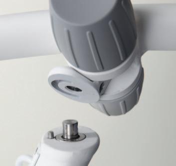 5. To attach the Accelerator Head, loosen the knobs by the socket at the end of the Accelerator Boom by 4-5 turns. Gently, but firmly, push the Accelerator Head into the socket. It will be held securely in place by the socket springs.