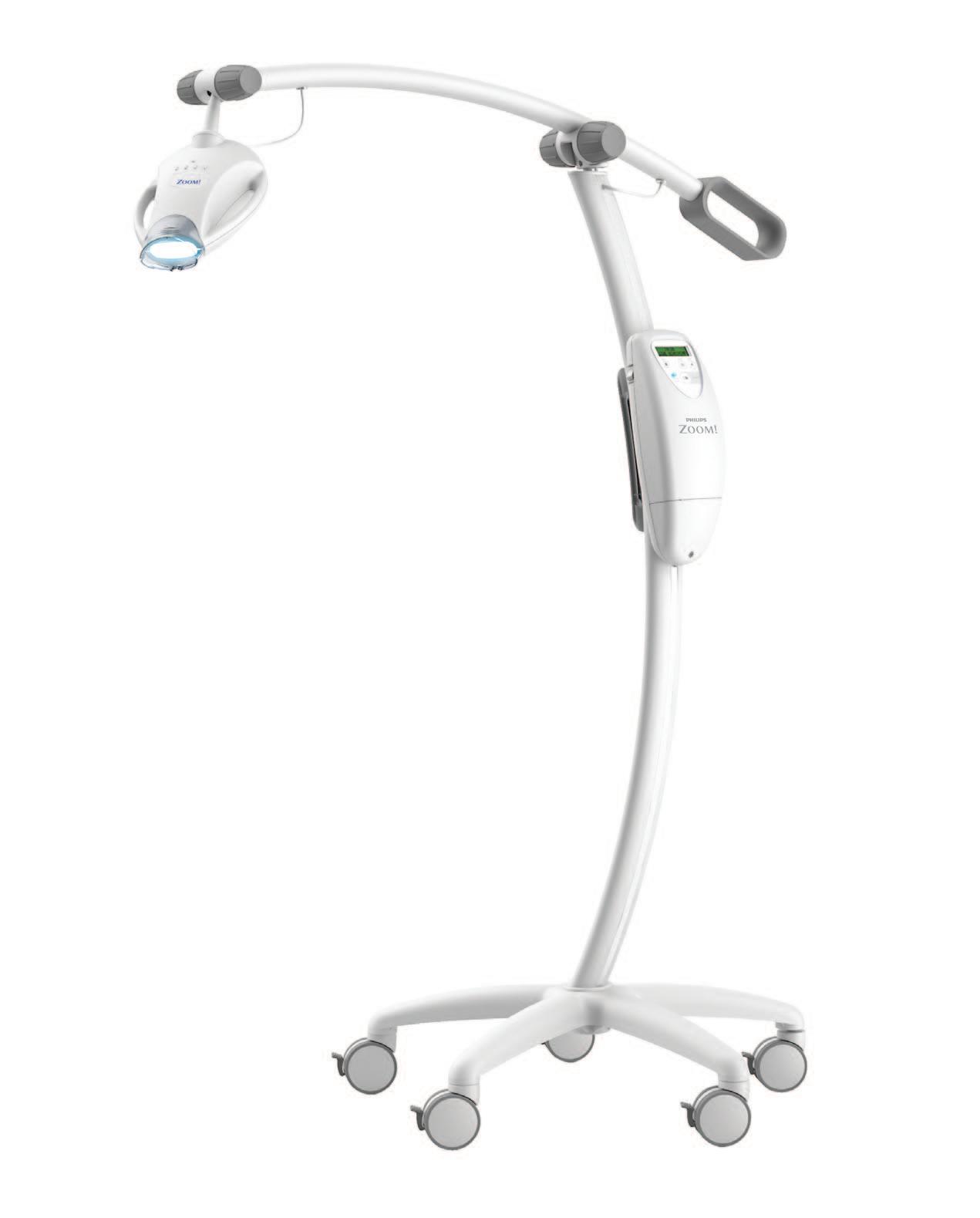 The Accelerator is a in-office teeth whitening light designed to be used by dental professionals for use in whitening discolored teeth. The Accelerator’s LED light source has been designed to deliver the optimal spectrum of light energy to activate Philips Zoom! Light-Activated In-Office Whitening Gel to deliver up to 6-8 shades* of teeth whitening. Wavelength emissions are between 400 to 505 nanometers(nm) and the energy intensity delivered to the teeth can be set at three levels depending on patient and case type. The Accelerator must be used at all times in accordance with the terms and conditions of the Letter of Agreement (LOA) provided and signed prior to delivery of the Accelerator.