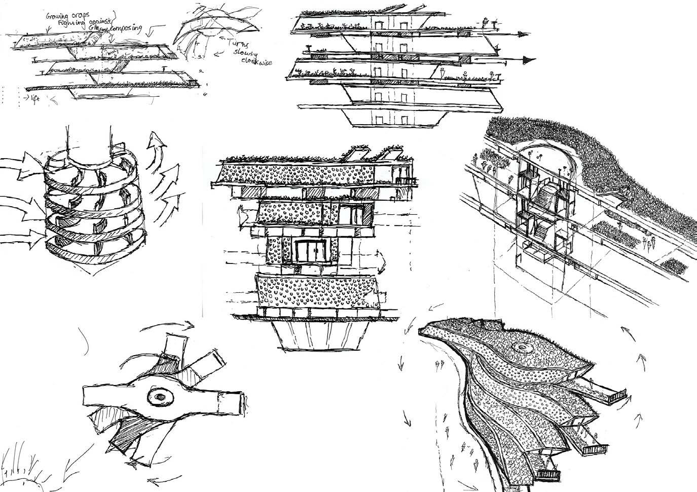 COMPOST ORGANIC FARMING SECTION DIAGRAM GF L1 L2 L3 L4 PROBLEMS WITH SOIL POLLUTION 1 Natural Pollutants Natural production in soil under certain environmental conditions (e.g., natural formation of perchlorate soil in the presence of chlorine source, metallic object and using the energy generated by thunderstorm) 2 Man-Made Pollutants Accidental spills and leaks during storage, transport or use of chemicals (e.g. leaks and spills of gasoline and diesel at gas stations); SOLUTIONS FOR SOIL POLLUTION 1 Reduce Waste Chemicals used in paper manufacturing can end up in the soil. Choose wisely when shopping; avoid purchasing products with excessive packaging. Reuse holiday wrap, or cut down on the amount you use. 2 Reduction of Human Impact Recycle whenever possible help ease soil pollution. Use cloth bags instead of paper or plastic at the grocery store, and substitute polycarbonate bottles for plastic water bottles. 1 2 first start of with this shape because it resembling a leaf, the reason why picked this leaf shape is due to my topics on soil pollution and harvesting. One thing you will be able to think of between the two topics will be plants and crops Secondly, started by spliting the form to 4 floors Hotelfor a mers & m esteka e s Market Space C o mposit ng Area O r g anicfa m ngArea 3 Then, created void area for the core which provides access points to lifts and stairs 4 5 After that, I’m showing how I’m going to reduce the size of the groundfloor Thirdly, as have reduced the size of the groundfloor due to having more room within the park area for people to have free roam. Because the height of each floor is 4 metres so allows to people to use some of groundfloor as shelter area 6 Lastly, rotated my desgin due to the circulation of the sun and also due to the fact that want to give each person a different spaitial experience in each floor