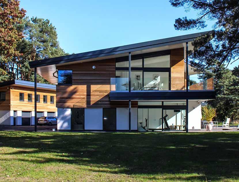 A low pitched roof with generous overhangs help to create a woodland lodge character responding sympathetically to the context.