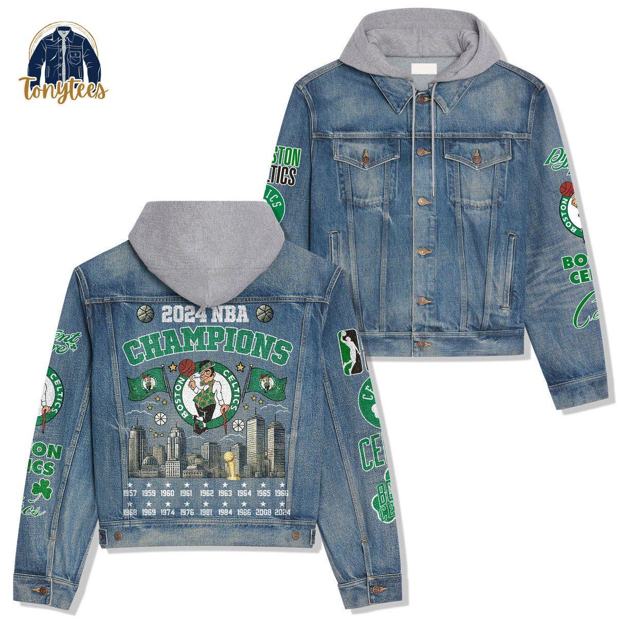 Buy it here: https://tonytees.com/product/boston-celtics-2024-nba-champions-hoodeddenim-jacket/From: Toneytees