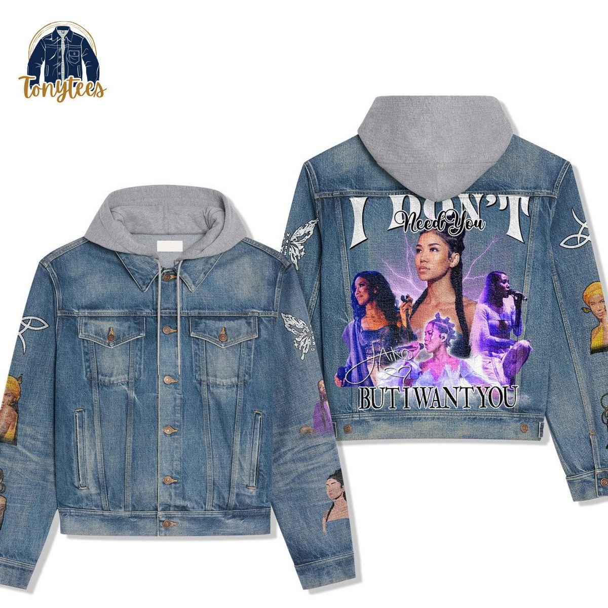 Buy it here: https://tonytees.com/product/jhene-aiko-i-dont-need-you-hooded-denimjacket/From: Toneytees