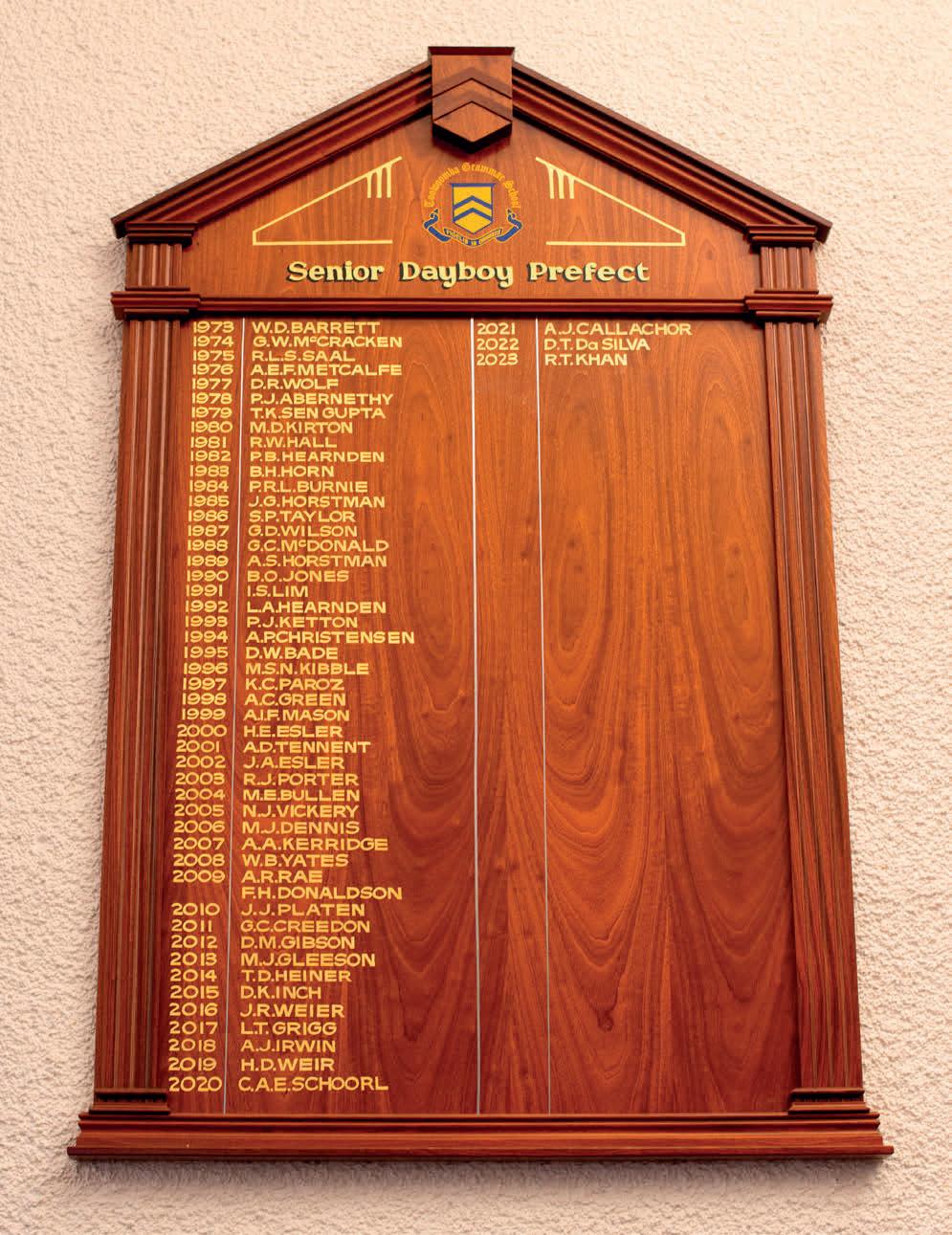 • All Old Boys of the School throughout the School’s history have had their names entered in two very special books held in the School Museum. Since 1877 the School Register has been painstakingly handwritten to record the name of every boy who has entered the School since the first day on 1 February 1877. There have been 14,861 names entered into the book from 1877 to 2007 filling 300 pages. As there were insufficient pages left in the Register to record the 2008 year’s intake, a new book was prepared. As at June 2024 this second volume of the School Admissions Register contained a further 3,885 student names, representing a total student enrolment from 1877-2024 of 18,746 boys. The original Register is 400mm high by 300mm wide