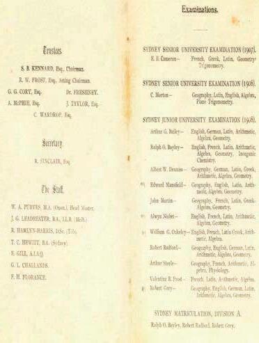 Headmaster: In September 1875, the Trustees called for applications for the Headmastership, advertising throughout Australia and Great Britain. The applicants within Australia totalled twenty-seven.