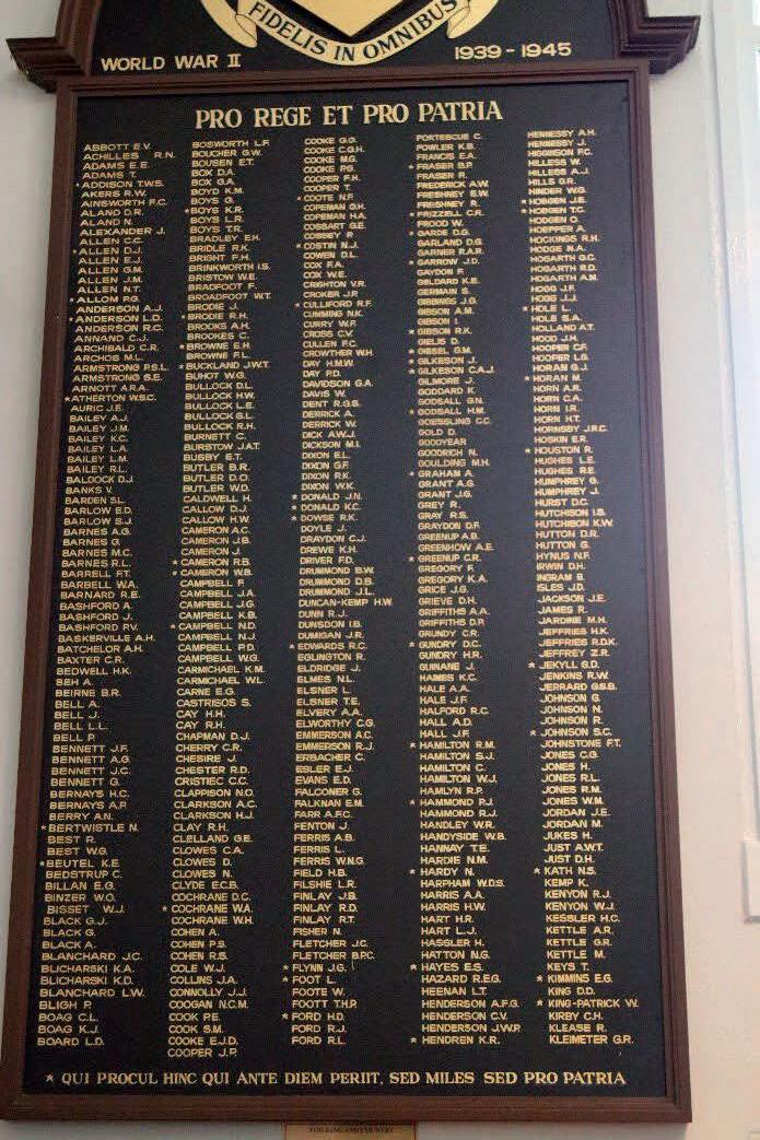 “Tonight, Your Excellency and Gentlemen, I do not intend to refer in detail to the atmosphere of tradition that is manifesting itself increasingly about the School, but I do ask you to remember the many great Old Boys of bygone days - those who have passed to the other side - those who have died in battle on the land, in the skies, and on the oceans of the world, those who have given and continue to give, in legacies of learning and achievement, outstanding public and professional service to Australia and to the world at large - eminent members of the Forces, doctors, dentists, engineers, scholars, journalists, captains of industry, commerce and finance, great men of the law, and not by any means least the pastoralists, farmers, and mining men who have forced our earth to yield her agricultural riches and her mineral wealth for the benefit of mankind throughout the world.
