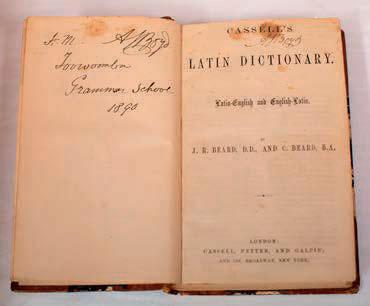 and 100mm thick, bound and covered in English calf leather which is embossed on the front. Both volumes of the School Register are housed in the School Museum. A photograph of the first volume of the School Register is included in this year’s entry together with the first page of its student admission records.