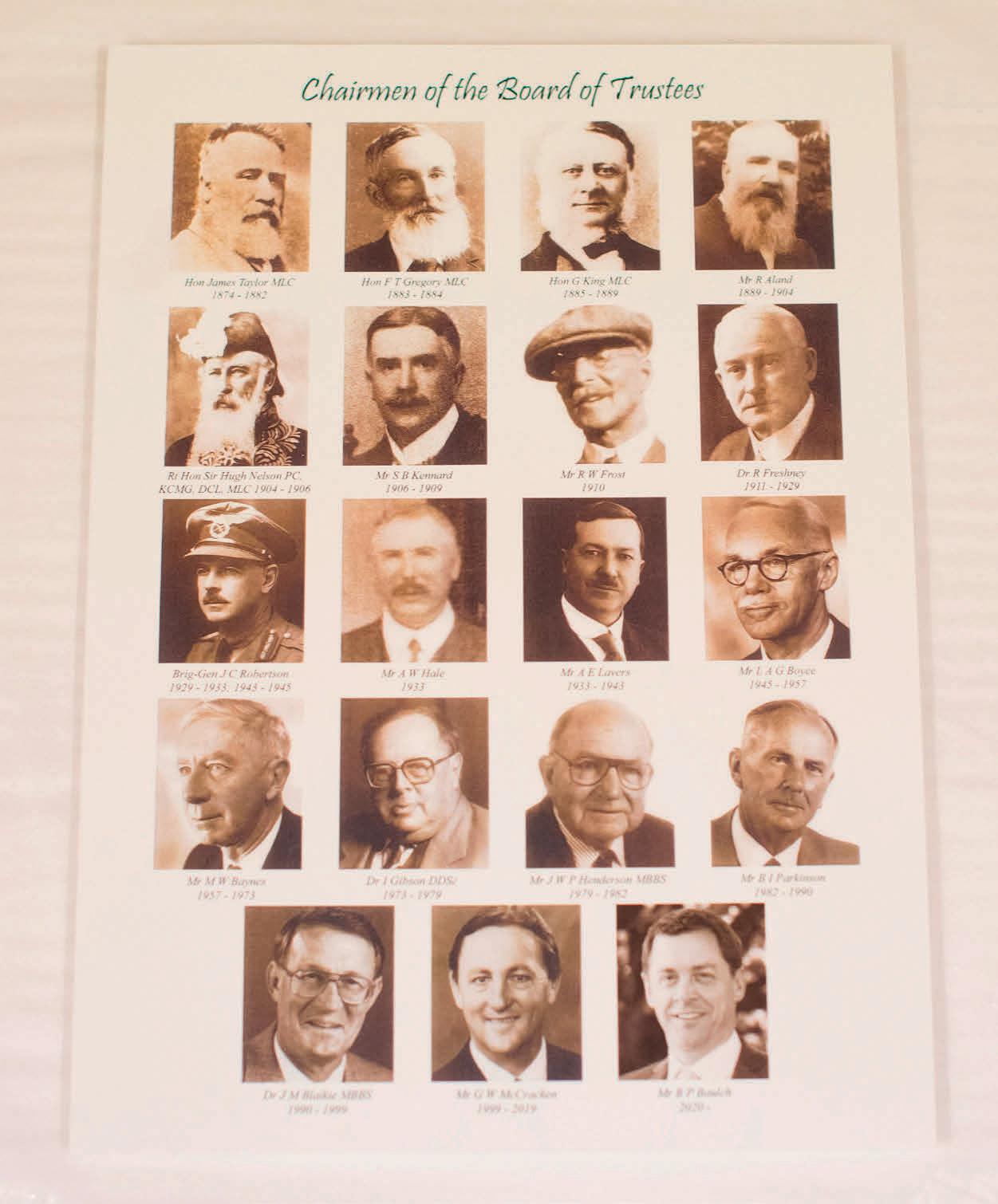 The authors of the first and second official school history books were invited to write the 100 years (centenary) and 125 years by the School’s Board of Trustees. My own work on the history of the School, 1875-2025, was not by invitation. Rather, I suggested the project to the School’s Board of Trustees in November 2016 requesting their permission to commence this undertaking. The project received the fullest support from the then Chairman of the School’s Board of Trustees, Mr Glen McCracken, and Deputy Chairman, Mr John Handley, and the other four Trustees of the School at the time, namely Mr Chris Wicks, Dr Russell Domrow, Dr Nicola Hulme-Peake and Mrs Kym Murray (the seventh member of the Board of Trustees, Mr Russ Johnson, had passed away earlier in this year but was also fully supportive of the initial concept). The Trustees of the School agreed that some of my forthcoming sabbatical leave (one term in 2017) be devoted to commencing such research. My retirement from the School in December 2020 has provided me with ample opportunity to continue, and complete, this task.