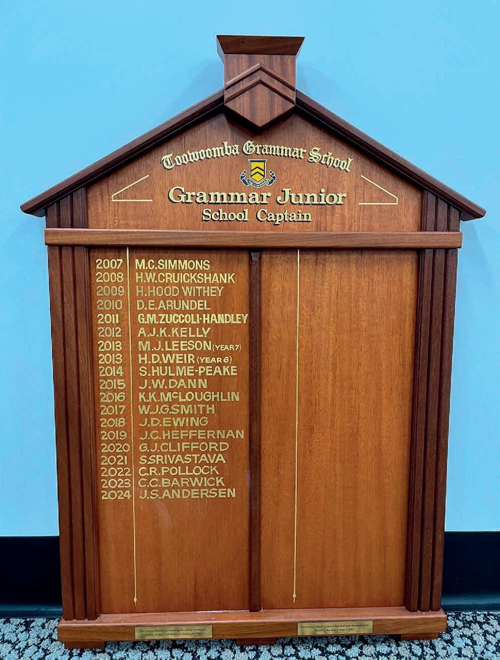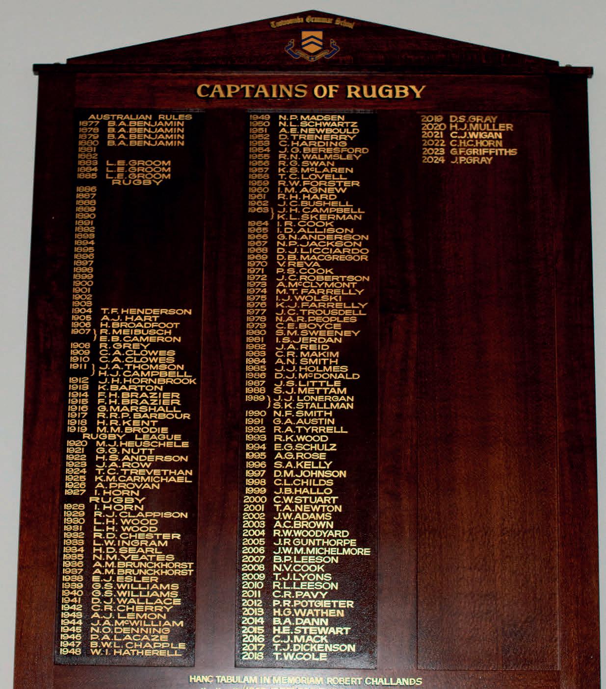 • As at June 2024 there have been 18,746 student names entered into the School’s hand-written Register of Admission. The original book contained the names of the 14,861 boys who studied at this School from February 1877 to 2007 (see photographs in the 1877-year entry). The second volume of this Admissions Register replicates the first volume in that it is a magnificent leatherbound book and continues the tradition of entering by hand the names of every student who has enrolled in this School. These two volumes are stored in the School’s Museum. On the Toowoomba Grammar School Old Boys’ Wall of Achievement, located on the School grounds, are over one hundred bronze plaques representing students who have advanced to have national recognition in their fields of endeavour. An alphabetical list of the names of all men whose success has been acknowledged on the Wall of Achievement is contained in the index of this book. Also featured on this Wall of Achievement is perhaps the most significant plaque of all, in that it acknowledges all Toowoomba Grammarians who have made commendable, yet perhaps somewhat anonymous, although productive contributions to society in all walks of life. These thousands of Old Boys have continued to live their lives demonstrating the qualities of integrity, loyalty, honesty, hard work, respect for others, service to others and kindness. A photograph of this bronze plaque on the Old Boys’ Wall of Achievement is included below.