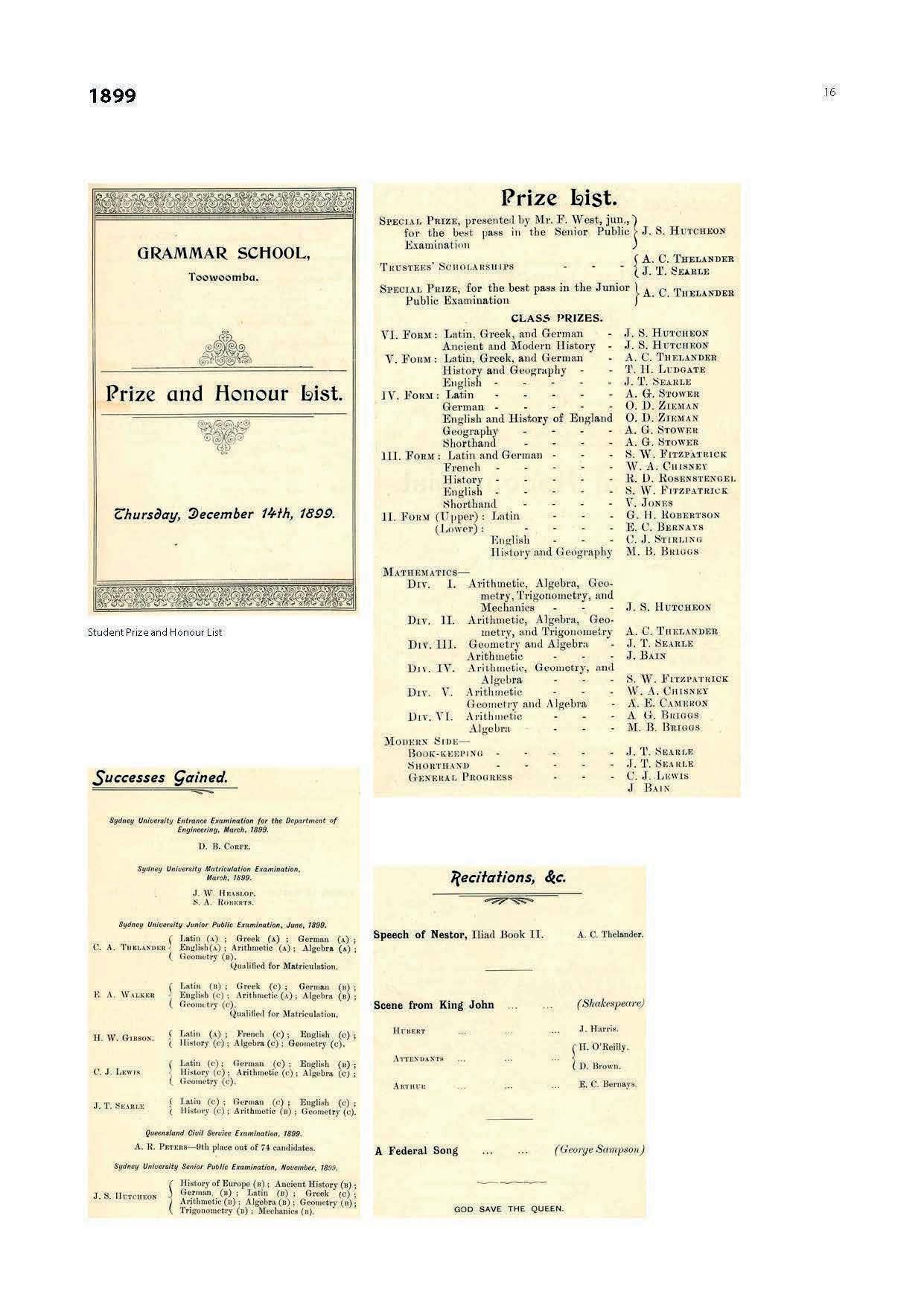 • A list of the names of all boys, and their home town, who attended Toowoomba Grammar School from 1877 to 1905 was published in the 1905 edition of the School Magazine (May, vol.2 edition) on pages 41-50.