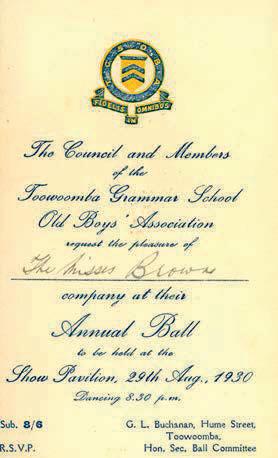 • Similarly, another tribute to the quality of Toowoomba Grammar Old Boys over the years was superbly summarised by Old Boy, Brigadier J.E.G. Martin (1917-1921) when proposing the Toast to the School at the Old Boys’ Reunion Dinner in Brisbane in September 1958. Brigadier Martin referred to the School’s 82nd year existence and noted: “In this short span the world has moved from the era of the horse and buggy and the paraffin lamp and great social distinctions to a brave, exciting, and, incidentally, very dangerous new age of supersonic flight, nuclear energy, automation, anti-biotics and plastic surgery, t he mechanised home and the welfare state. … Not all who pass through the School can achieve great eminence in their chosen careers. I suggest that the prime function of the School is to produce men – men of goodwill with a sense of both private and public responsibility; men who are not automatons but are trained to think and to evaluate. If they have these qualities, it will not be long before they find their natural place in the stream of community life. The School can be proud that its Old Boys answer the roll call in all grades of leadership in every section of business and professional life in the community. A State Governor, University Professors, Headmasters of Great Public Schools, Members of Parliament, men who have attained eminence in the various branches of pure and applied science, technologists, leaders of social and philanthropic activities, men who serve with distinction in the Services, all of these add lustre to the history of the School. But TGS should be no less proud of all those who, though nameless to the general public, are carrying on the traditions of the School in their various vocations, and, though they do not get their names in the daily Press, are respected for the dignity of their labours and for their philanthropic and community service in their own suburbs and villages. Among all those who served their country in the wars, those who achieved no particular eminence or distinction, but always did a good job - not because it was an exciting or glamorous enterprise, but because the spirit of the old School urged, "There's a job to be done, you ought to be in it!" - these constituted the great majority on which the fate of battles ultimately depended.” (Source –Toowoomba Grammar School Annual M agazine 1958).