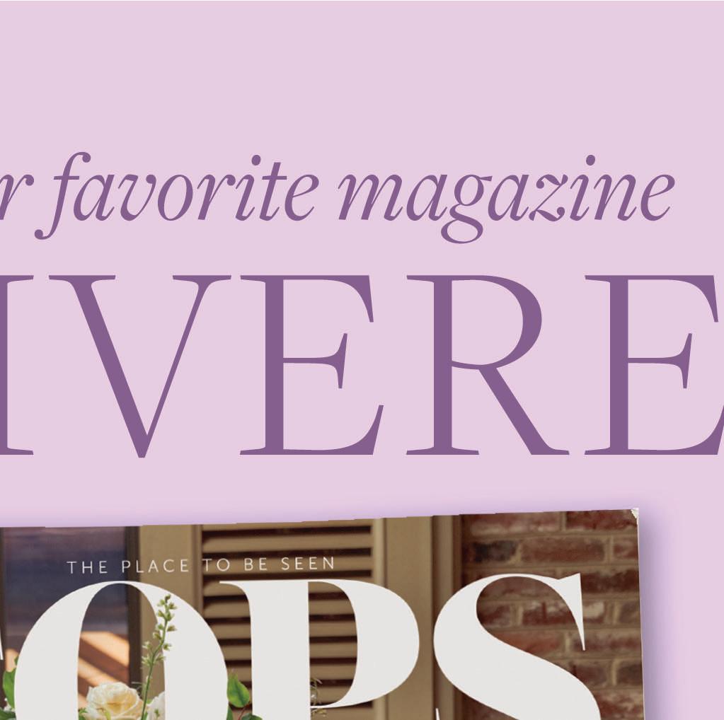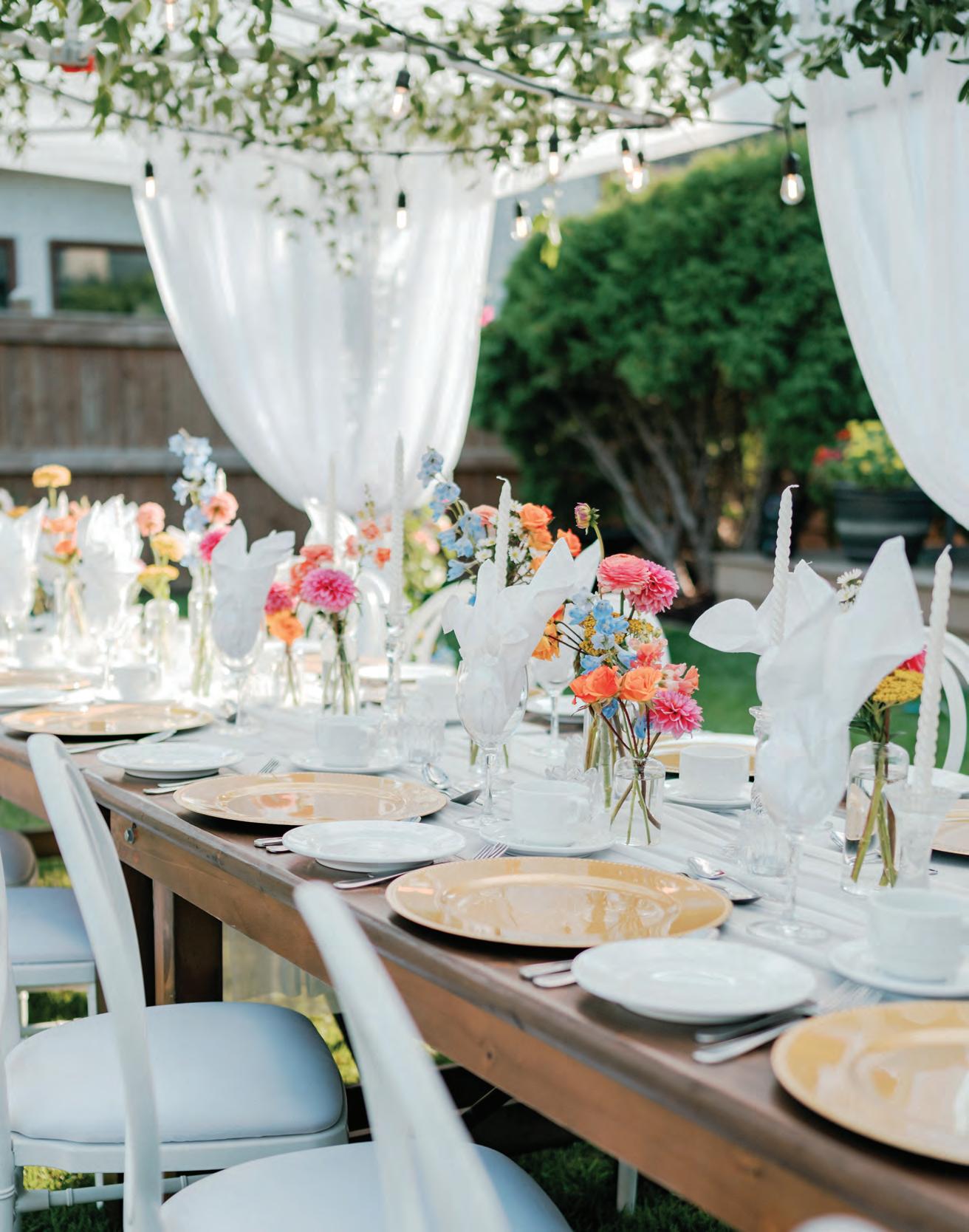 Who doesn’t love a beautiful wedding!? A celebration fi lled with family, friends, and joy while witnessing two people choose each other surrounded by everyone who shaped their story. Weddings are an opportunity to connect with those we love and enjoy surroundings where everything is a little more beautiful than usual. There’s the quiet thrill of getting dressed up, the hum of celebration as guests gather, and the collective pause when the ceremony begins. Laughter, happy tears, clinking glasses along with heartfelt toasts fi ll the day, all wrapped in an atmosphere of love and promise. From planning, to showers, to the big day, here’s a few of my picks to help make perfect memories.