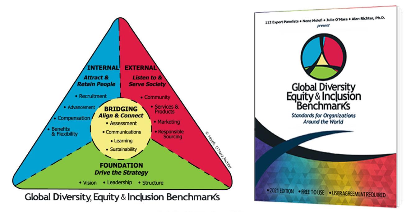 TThe Global Diversity, Equity and Inclusion Benchmarks: Standards for Organisations around the World is an 80-page guidebook written by three authors – Nene Molefi, Julie O’Mara and Dr Alan Richter, with extensive input from 112 expert panelists from around the world.