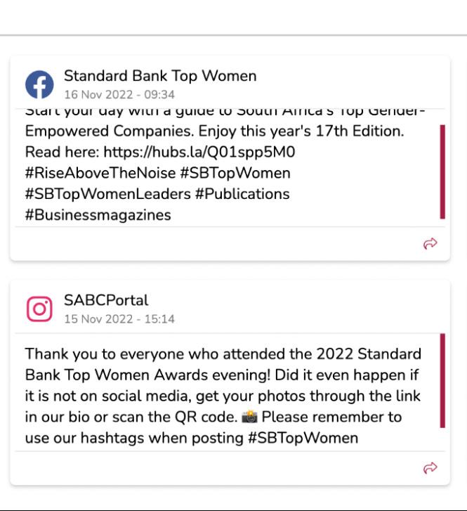 Standard Bank Top Women | 90 SOCIAL MEDIA STATISTICS AFTER AWARDS | AMASOCIAL R143 670 502,34 R17 794 635,58 R1 652 271,4 R163 117 409,32