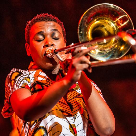 Siya Makuzeni is a professional South African trombone player, vocalist, lyricist and songwriter; Johnnie Walker Ambassador (2019), British Council Commissioned Composer (2018), Standard Bank Young Artist for Jazz 2016 recipient, as well as featuring in Grammny award artists David Murray, Jacky Terrasson and Branford Marsalis’ performances in 2016-2017.