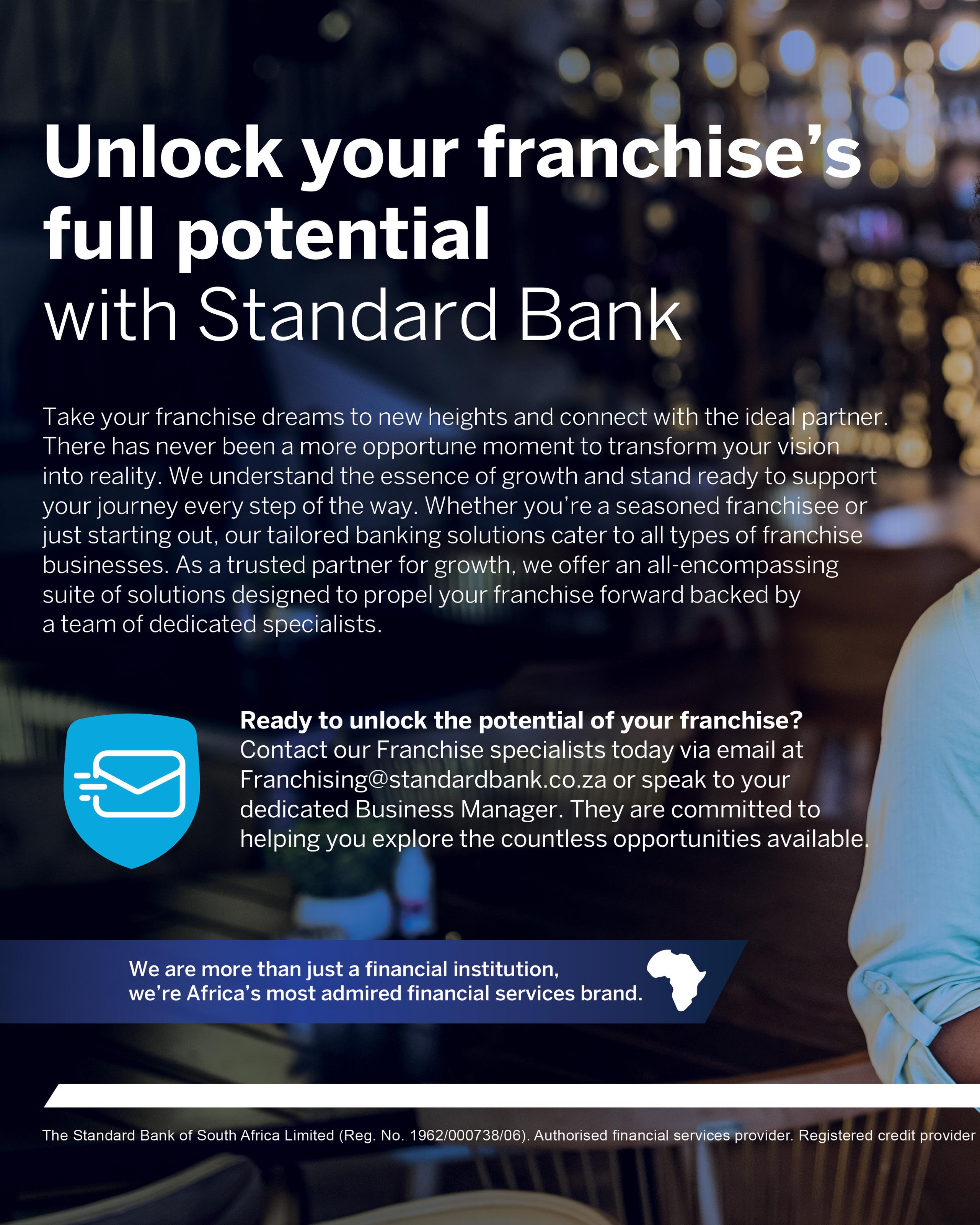 ANNE ALIKER Embracing challenges: Lessons from a 26 THANDEKA GOBA path to success COVER STORY 32 NOZICELO NGCOBO PACS Director is inspiring the next generation UPFRONT 8 CONTRIBUTORS AND CREDITS 10 FEATURED CLIENTS 13 14 FOREWORD Standard Bank Group C o n t e