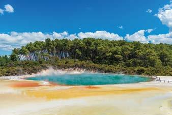 • Step into a colourful, bubbling world where geysers and hot springs put on a spectacular natural show at Wai-O-Tapu thermal pools.