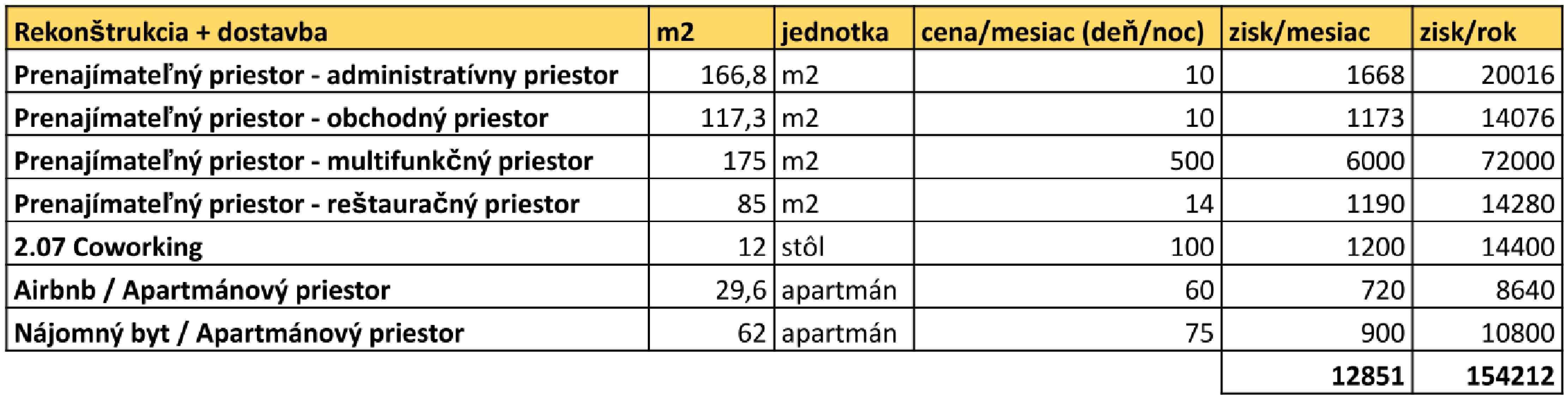 .otvorenievnútroblokuasanáciou objektu(prepožiarnutechniku,sanitky, zásobovanieapod.) .využitienosnýchkonštrukciíobjektov .využitieindustriálneholooku .využitiestriechavonkajšíchpriestorov navytvoreniepobytovýchplôch .možnosťvyužitianakomerčnéúčely .rentabilitapriestorov