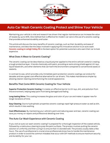 Topline Auto Spa in Allentown, Pennsylvania, delivers top-tier auto detailing and maintenance services for vehicles of all types. From professional exterior washes and paint corrections to meticulous interior detailing and ceramic coatings, our expert team ensures your car remains in pristine condition. With a focus on excellence, we aim to provide unmatched care and results that exceed expectations.