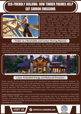 The construction industry faces increasing demands to implement sustainable building methods because climate change has become a major worldwide problem The production of traditional construction materials such as concrete and steel results in high carbon emissions because their manufacturing processes consume large amounts of energy. Timber frame construction provides an environmentally sustainable solution that competes with traditional building methods Timber frames contribute to sustainable building practices because they use renewable materials and decrease embodied carbon.