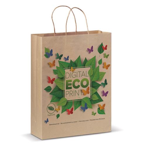 Mocna, duża torba wykonana w 80% z materiałów PET pochodzących z recyklingu. Duża powierzchnia nadruku. Możliwość zamówienia w dowolnym rozmiarze od 3.000 szt.